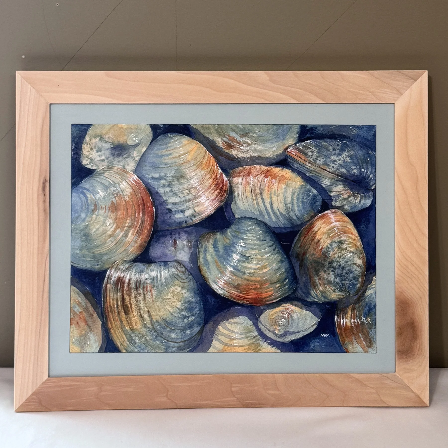 The painting is framed in a natural poplar wood float frame, wired and ready to hang.